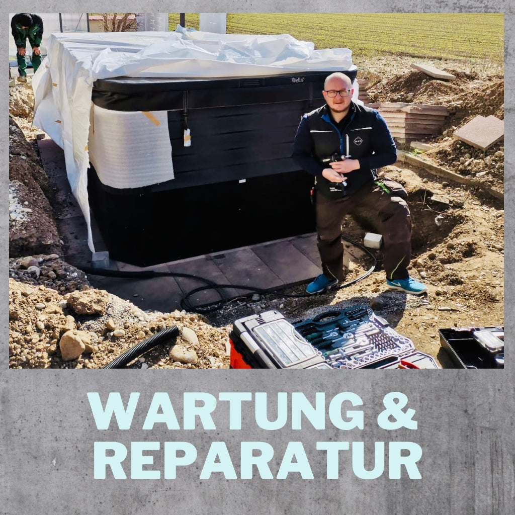 Jederzeit rundum sichere und sorglose Nutzung Ihres Whirlpools. Ein Whirlpool besteht aus bis zu knapp 300 Einzelteilen. Die Zirkulationspumpe ist täglich im Betrieb und wälzt mehrere hundert Liter Wasser in Ihrem Spa um. Ob LED Beleuchtung, Massagepumpen oder Durchlauferhitzer. Ihr Whirlpool muss ganz schön was leisten. Um den dauerhaften Spaß und Erholungsfaktor zu garantieren, empfehlen wir eine regelmäßige Wartung.Wir bieten folgenden Service für jeden Hersteller und jedes Modell